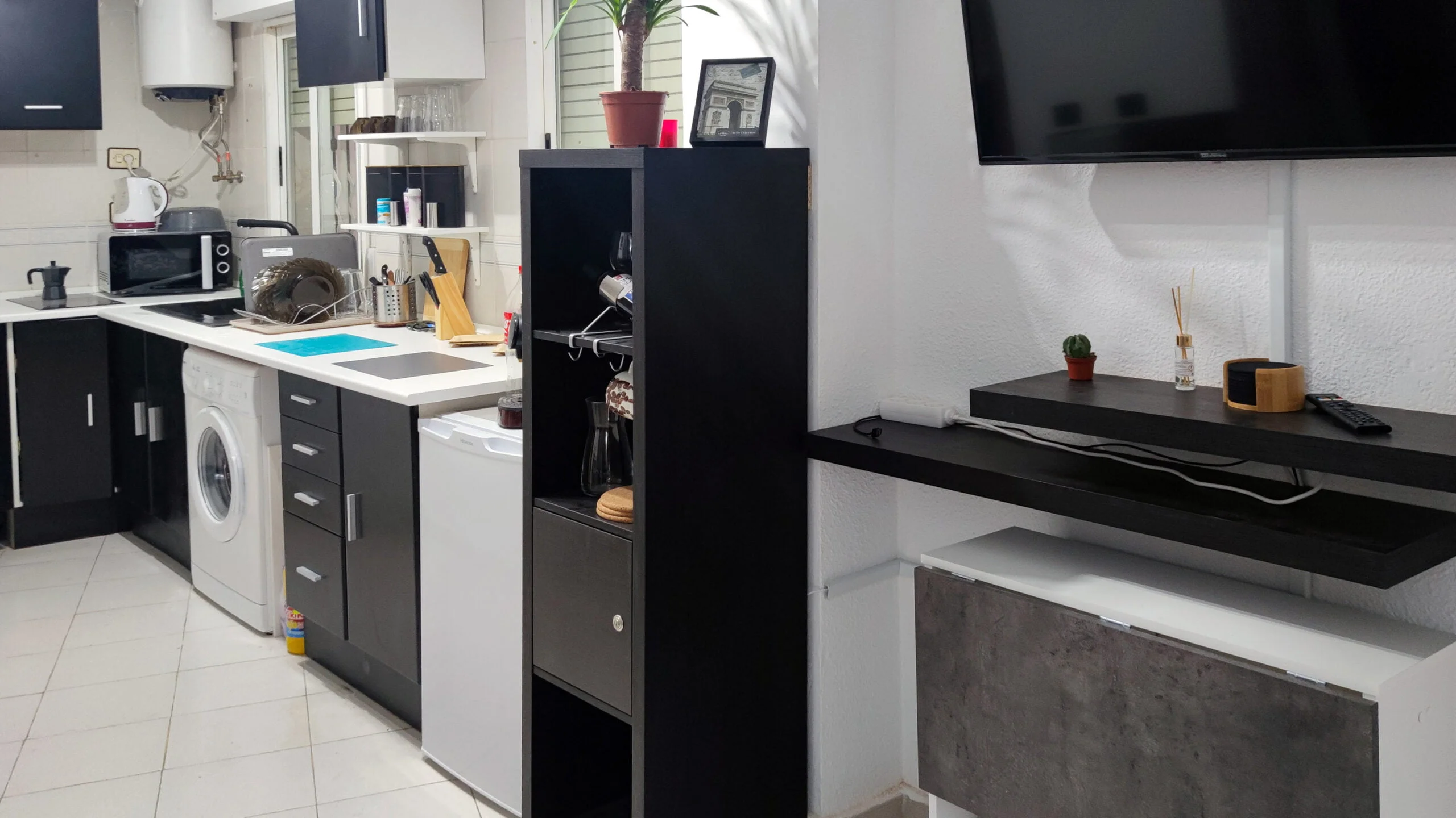 The bedroom holds a queen-size bed , while an additional sofa-bed is located in the living room. The kitchen is designed “French style” and is fully equipped, including a built-in filtered water system and washing machine. There is air conditioning, Smart TV and ultrafast WiFi in the flat as well as a patio with a hammock and garden table/chairs.